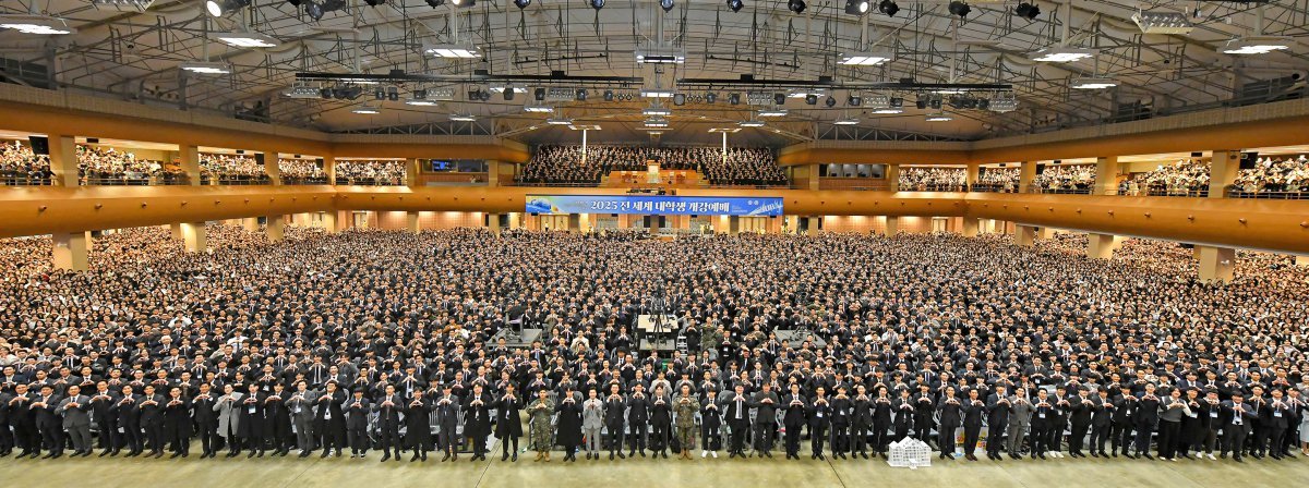 하나님의 교회가 2일 옥천고앤컴연수원에서 ‘2025 전 세계 대학생 개강예배’를 개최했다. 올해 대학생활을 시작하는 신입생부터 재학생, 학부모 등 전국에서 9350여 명이 모여 성황을 이뤘다.