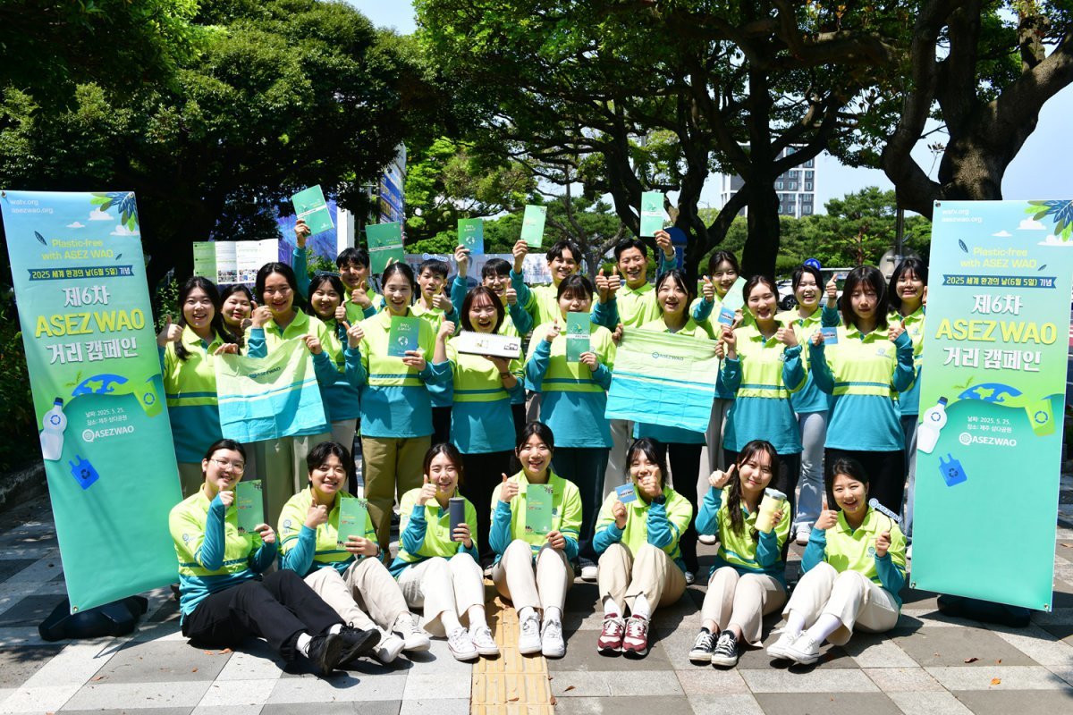 ‘세계 환경의 날(6월 5일)’을 기념해 제주 삼다공원에서 진행된 거리캠페인과 버스킹에는 각계각층 유력인사와 ASEZ WAO 회원, 동료, 이웃 등 400명에 달하는 시민이 함께했다. 개회식에서 김용갑 ASEZ WAO 대표는 “올해 세계 환경의 날 주제가 ‘플라스틱 오염 종식’”이라며 “우리도 플라스틱 프리 캠페인을 통해서 이에 발맞추고 있다”면서 세계적 동참의 중요성을 강조했다. 이상봉 제주도의회 의장은 축사에서 “일상 속 플라스틱 사용을 줄이고, 재사용·재활용을 생활화하는 작은 실천이 모여 지속가능한 제주, 지속가능한 지구를 만드는 밑거름이 될 것”이라고 응원했다.행사는 전문가 및 활동가 토크, 환경노래 등으로 풍성하게 꾸려졌다. 직장 내 환경보호 실천 프로젝트 ‘Green WorkPlace’를 안무로 표현한 퍼포먼스가 첫 무대를 장식했다. 이어서 ASEZ WAO 회원으로 구성된 중창단의 다채로운 환경노래가 울려 퍼졌다. 미래를 위해 함께 꿈꾸고 행동하자는 메시지를 담아낸 ‘Our Dream’을 비롯해 ‘Green Earth(육상생태계 보호)’, ‘Mother’s Forest(나무심기)’, ‘Blue Ocean(해양생태계 보호)’, ‘No More GPGP(플라스틱 줄이기)’ 등 ASEZ WAO의 노래가 시민들의 환경의식을 고취했다. 마지막 곡으로 ‘함께해요 ASEZ WAO’를 선사하며 관객의 호응을 이끌었다.