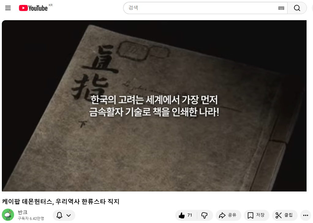 사이버외교사절단 반크(단장 박기태)는 넷플릭스 애니메이션 ‘케이팝 데몬 헌터스(이하 케데헌)’가 전 세계적인 인기를 얻으며 한국 대중문화가 다시금 주목받는 가운데, 한류의 문화적 뿌리와 정신을 조명하는 홍보 콘텐츠 ‘케이팝 데몬헌터스, 우리역사 한류스타 직지’를 공개했다.