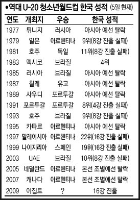 역대 국제축구연맹(FIFA) U-20 월드컵에서 한국이 거둔 최고 성적은 83년 멕시코 대회의 4위다. 박종환 감독이 이끈 한국은 16개 팀이 치른 조별리그를 통과한 뒤 8강에서 우루과이를 2-1로 누르고 4강에 올랐다. 4강에서 강호 브라질을 상대로 선전했지만 1-2로 패해 결승 진출에 실패했고, 3-4위전에서 폴란드에 져 4위를 차지했다. 세계축구의 변방으로 꼽혔던 한국의 선전에 세계가 놀랐다.