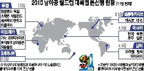 한국,1조 1위 덴마크와 내달 평가전 추진히딩크의 러시아는 ‘전차군단’ 독일을 넘지 못했고, 마라도나의 아르헨티나는 기사회생했다. 아울러 다음 달 허정무호의 유럽 원정 상대로 덴마크가 유력해졌다. 11일 현재 남아공월드컵 본선 진출국은 총 19개국으로 늘었다. <그래픽 참조>