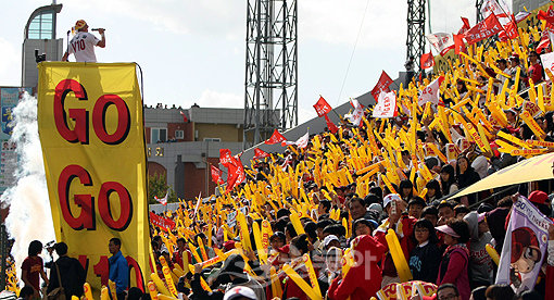 2009 프로야구 한국시리즈 2차전 기아타이거즈 대 SK와이번스 경기가 17일 광주 무등경기장에서 열렸다. 기아측의 응원모습. 광주 | 김종원기자 won@donga.com