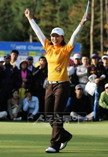 뒷심 발휘…3개홀 연속 버디, 2위 최나연에 5타차 우승 ‘V3’