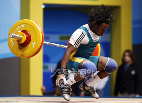 20일 오후 경기도 고양시 킨텍스에서 열린 ‘2009 세계역도선수권대회’ 남자부 62kg급 C그룹 경기 인상 2차시기에서 다니엘 쿰(호주)이 실패하고 있다.