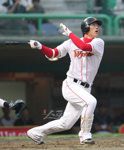 그럼에도 얼굴에 ‘피로’라고 써 있는 이유는 그만의 ‘트리플 헤더’를 치렀기 때문. 만삭이었던 박정권의 부인 김은미 씨가 전날 오후 4시부터 산통을 시작해 출산하기까지 14시간이나 걸렸다. 새벽 6시30분에서야 3.2kg의 딸을 낳았다. 6일 KIA전을 치르고 병원으로 달려간 박정권은 피곤함을 풀 새도 없이 다시 야구장에 나와야 했다. 산모와 첫 아이 모두 건강해 안심이지만 “내 애가 맞나?”라고 말할 정도로 아직은 얼떨떨한 신참 아빠다. 박정권은 아기의 태명을 ‘홈런’이라고 지었는데 곁을 지나가던 정근우는 “오늘 홈런 치면 ‘홈런이’를 위한 축포”라고 건넸다. 정근우의 아기 태명은 ‘히트’였다. 이러다 야구 용어로 태명 짓는 것이 유행이 될 것 같다는 얘길 듣자 박정권은 “그렇다고 ‘객사’라고 지을 순 없지 않느냐?”라고 특유의 허무 개그로 좌중을 웃겼다. 박정권은 홈런 대신 4회 두 번째 타석 안타로 ‘홈런이’를 위한 첫 선물을 안겼다.