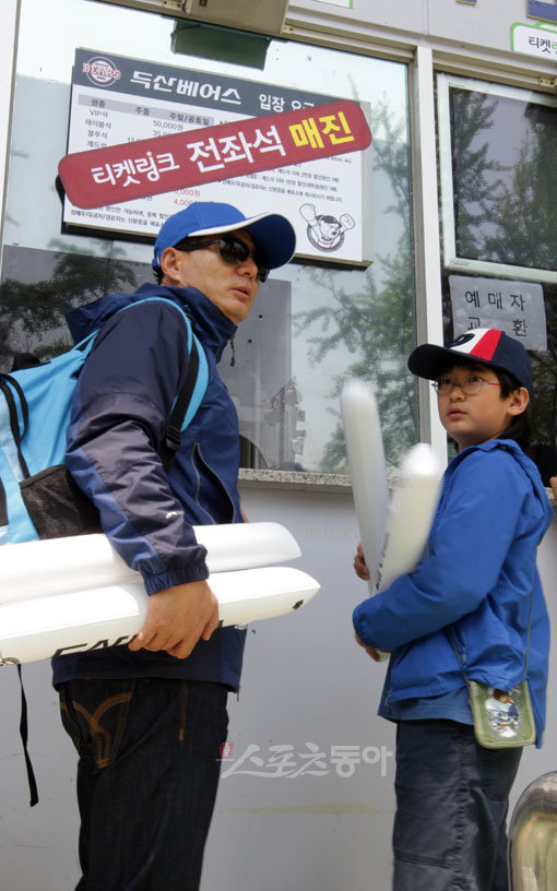 5일 서울 잠실야구장에서 열린 ‘2011 롯데카드 프로야구’ 두산과 LG의 경기가 어린이날을 맞아 전좌석 매진돼 시민들이 발길을 돌리고 있다. 2009년부터 어린이날 3년 연속 전구장이 매진됐다.