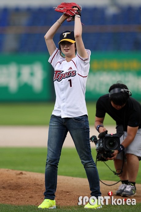`2012 팔도 프로야구` KIA 타이거즈와 LG 트윈스의 경기가 21일 오후 광주 무등야구장에서 열렸다. 경기에 앞서 런던 올림픽 여자양궁 2관왕 기보배가 멋진 시구를 선보이고 있다.