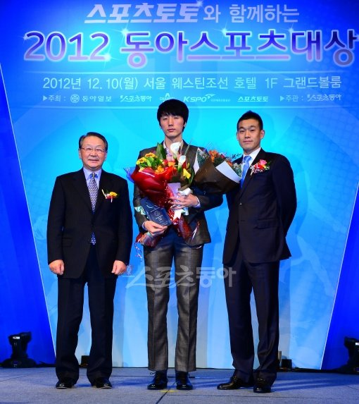 10일 오전 서울 웨스틴조선 호텔 그랜드볼룸에서 열린 2012 동아스포츠 대상 시상식에서 대한항공 곽승석이 프로배구 올해의 선수상을 수상하고 있다.