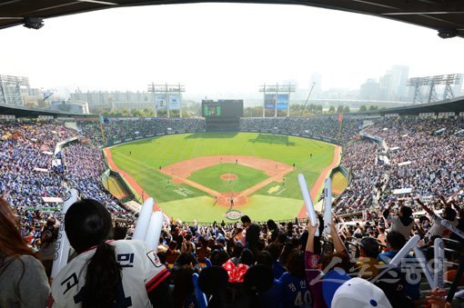 프로야구가 흥행가도를 달리자 서울시는 2012년부터 잠실구장의 광고권을 회수했다. 올해부터는 3년간 매년 100억원이 넘는 수익을 올리지만, 프로야구단의 몫은 없다. 스포츠산업 전문가들은 ‘프로야구단 마케팅 활동이 위축되지 않을까’ 우려하고 있다. 사진은 만원관중이 들어찬 잠실구장. 스포츠동아DB