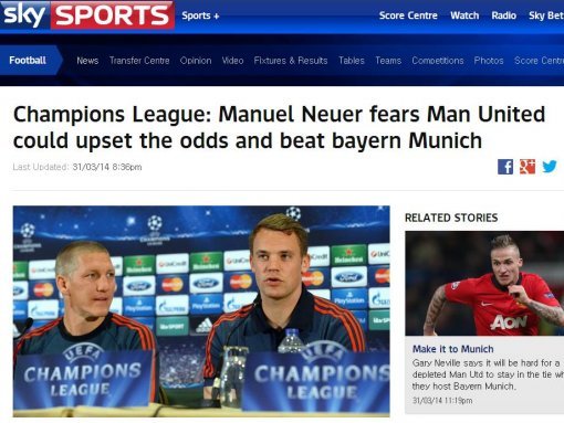 바이에른 뮌헨의 골키퍼 마누엘 노이어(28)가 맨체스터 유나이티드(이하 맨유)에 대한 경계심을 늦추지 않았다.