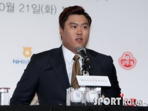 LA다저스 류현진이 21일 오후 서울 광진구 광장동 쉐라톤 그랜드 워커힐 호텔 워커힐 시어터 에서 진행된 입국 공식 기자회견에 참석해 취재진의 질문을 듣고 있다.