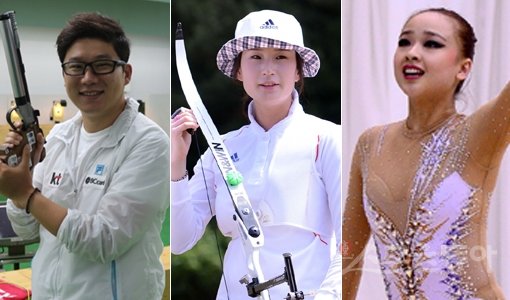 리우올림픽에 도전하는 사격 진종오-양궁 기보배-리듬체조 손연재 선수(맨 왼쪽부터). 스포츠동아DB