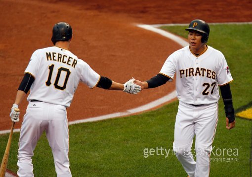 조디 머서(좌)와 강정호(우). ⓒGettyimages이매진스