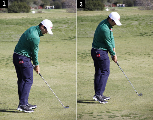 오른발을 늦게 떼는 동작은 아이언 샷에서도 좋은 효과를 낸다. 임팩트 순간 클럽이 공과 지면 사이를 강하게 파고들면서 탄도를 높게 만들고, 공이 묵직하게 날아가는 효과로 이어져 방향성이 좋아진다.