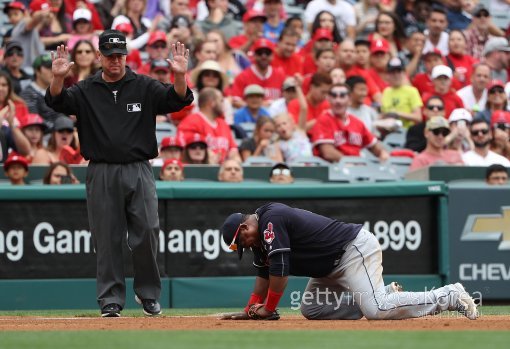 유리베는 4회 선두타자로 나선 트라웃이 클리블랜드 선발 대니 살라자를 상대로 때린 타구를 잡는 과정에서 낭심 부위를 강타 당했고, 결국 그라운드에 쓰러졌다.