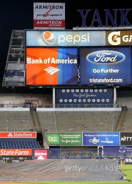경기를 중단시킨 비는 9회 들어 심해졌다. 뉴욕 양키스의 조 지라디 감독은 9회 무사 1루 추신수 타석 도중 경기 중단 요청을 했고, 주심은 이를 받아들였다.