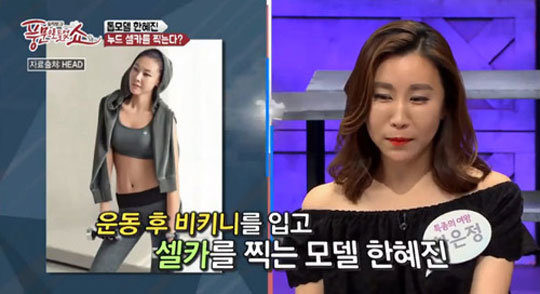 4일 밤 방송된 채널A ‘풍문으로 들었쇼’(이하 ‘풍문쇼’)에서 이지혜는 “한혜진의 명품 몸매 비결이 누드 셀카라고 하더라”라는 풍문을 전했다.