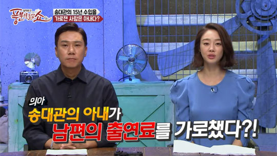 29일 방송된 채널A ‘풍문으로 들었쇼’에서는 ‘송대관의 15년치 출연료를 가로챈 사람은 아내다’라는 풍문에 대해 이야기를 나눴다.