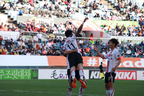 한편 울산현대는 상주시민운동장에서 벌어진 상주상무와의 원정경기에서 2-1로 이겨 14승10무12패, 승점 52로 3위 제주(16승7무13패·승점 55)와의 격차를 줄였다. 울산은 내년 시즌 아시아축구연맹(AFC) 챔피언스리그 출전권 획득에 대한 희망을 이어갔다. 수원종합운동장에서 펼쳐진 시즌 마지막 ‘수원 더비’에선 수원삼성이 수원FC를 3-2로 따돌리고 8위(9승17무10패·승점 44)로 올라섰다.