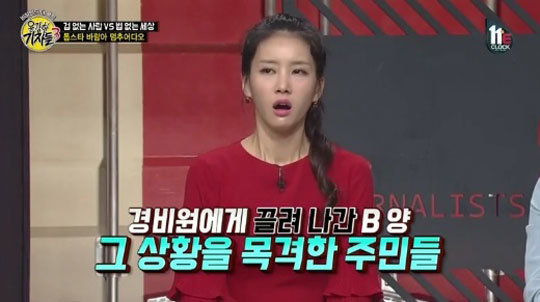 그런데 A군이 경비원에 연락해 '저 여자를 쫓아내 달라'라고 했다더라. 경비원에 의해 끌려나가는 B양의 모습이 주민들에 노출돼 '한류스타 B양이 남자 친구 A군에 쫓겨났다'는 불명예를 얻게 됐다"라고 전했다.