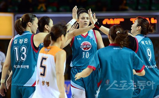 KEB하나은행은 19일 청주체육관에서 벌어진 KB스타즈와의 ‘삼성생명 2016∼2017 여자프로농구’ 3라운드 원정경기에서 21점·8리바운드를 기록한 나탈리 어천와를 비롯해 3명이 두 자릿수 득점을 올리며 70-61 승리를 거뒀다. 1라운드 전패를 떠안았던 하나은행은 빠른 농구를 몸에 익히며 조직력을 장착했고, 3라운드에선 단독 선두 우리은행을 제외한 모든 구단을 상대로 승리를 챙겼다. 8승7패를 기록한 KEB하나은행은 2위 자리를 지켰다.
