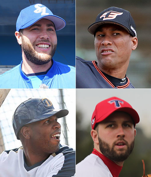 삼성 러프-한화 오간도-KIA 팻 딘-NC 스크럭스(왼쪽 상단부터 시계방향으로). 사진제공|삼성 라이온즈·한화 이글스·KIA 타이거즈·NC 다이노스