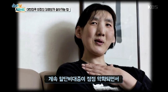 또 “등 뒤에서 사람들이 날 보며 무심코 던지는 말 때문에 웃는 사람들의 시선이 두렵다. ‘나를 인간으로 보는 건가’하는 생각이 든다. 여고 시절 3년 동안 나의 흉측한 모습이 싫어 거울을 안 봤다”고 고백했다.