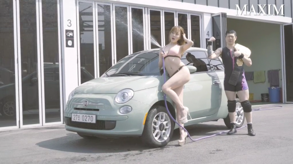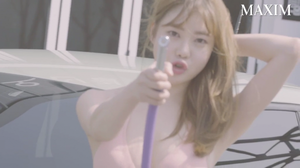 화보 촬영장에서 미스맥심 정연은 파격적인 핑크 비키니를 입고 나타나 현장의 분위기를 뜨겁게 달궜다. \'세차\'를 콘셉트로 한 이번 촬영에서 정연은 멋진 포즈와 눈빛으로 독자의 차의 고급스러움과 섹시함을 한껏 끌어올렸다.