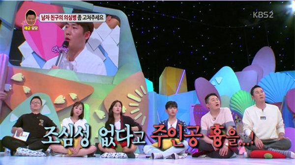 28일 밤 방송된 KBS 2TV \'안녕하세요\'에서 김태균은 의심 많은 남자친구 때문에 고민인 여성의 사연을 소개했다.