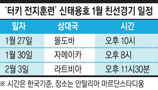 신태용(48) 대표팀 감독은 22일 터키 안탈리아로 떠나 3차례 A매치를 포함한 약 2주 간의 동계훈련을 진행할 계획이다. 지난해 9월 월드컵 아시아 최종예선 통과를 확정하자마자 이 스케줄을 확정했다..