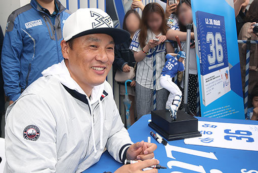 삼성의 레전드이자 KBO 홍보대사인 이승엽이 22일 대구에서 열린 KT-삼성전에 앞서 자서전 ‘나.36.이승엽’ 발간 기념 팬 사인회를 갖고 있다. 사진제공|스포츠코리아
