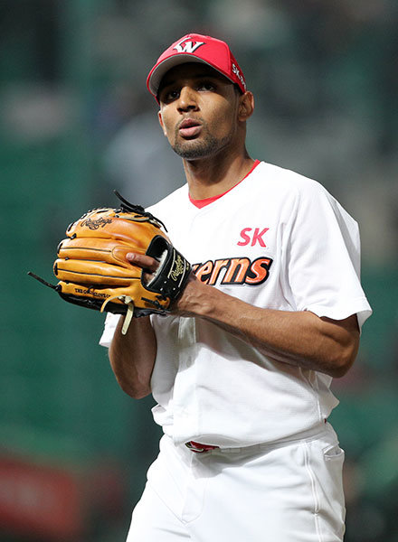 SK 새 외국인투수 앙헬 산체스는 시속 150㎞ 안팎의 위력적인 공을 던진다. 이런 수준급 외국인투수들의 가세 효과가 발생하며 리그 전체적으로 탈삼진이 증가하고 있다. 사진제공|스포츠코리아
