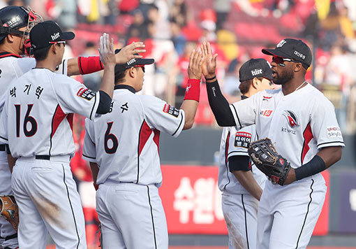 점수차를 배제하더라도 KT의 7회 이후 팀 타율은 0.332(16홈런)로 리그에서 가장 높다. 이 부문 2위 두산(0.276)과 격차도 0.056으로 작지 않다. 팀 홈런 2위(49개)를 자랑하는 강타선이 후반에 더욱 집중력을 뽐냈다는 의미다. 7회 이후 타율 꼴찌 넥센(0.218)과 격차는 1할이 넘는다.