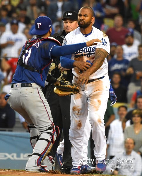사건이 벌어진 것은 지난 14일 LA 다저스와 텍사스의 경기 도중. 2루 주자였던 켐프는 키케 에르난데스의 안타 때 홈을 파고들었다.