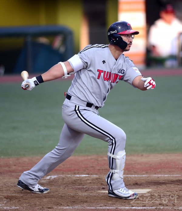 20일 청주야구장에서 ‘2018 신한은행 MY CAR KBO리그’ LG트윈스와 한화이글스 경기가 열렸다. 3회초 무사 2,3루 LG 박용택이 1타점 희생플라이를 치고 있다.
