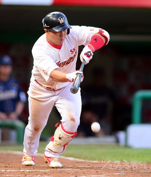 KBO리그에도 내야 한 쪽을 비우는 ‘극단적 시프트’가 자리매김했다. 하지만 기습번트로 이 시프트를 깨는 장면은 찾아보기 힘들다. 거포들의 자존심 문제에 번트의 어려움까지 더해지며 ‘정면승부’가 펼쳐질 수밖에 없다. 사진은 기습번트를 대고 있는 SK 최정. 스포츠동아DB