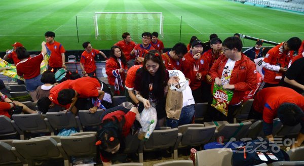 FIFA U-20 월드컵 대한민국과 우크라이나의 결승전 응원이 서울상암월드컵경기장에서 열렸다. 대한민국이 1-3으로 아쉽게 패한 가운데 시민들이 자신들의 쓰레기를 줍고 있다. 상암 | 김진환 기자 kwangshin00@donga.com