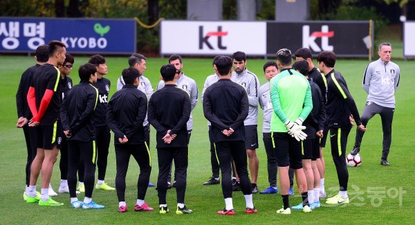 카타르월드컵 아시아 예선경기를 앞두고 한국축구대표팀이 7일 파주 축구국가대표트레이닝센터(NFC)에 소집됐다. 축구대표팀 선수들이 모여 훈련을 준비하고 있다.