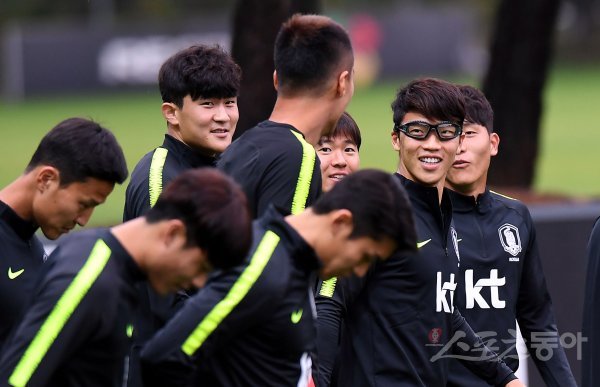 카타르월드컵 아시아 예선경기를 앞두고 한국축구대표팀이 7일 파주 축구국가대표트레이닝센터(NFC)에 소집됐다. 축구대표팀 황희찬이 고글을 쓴채 훈련에 나서고 있다.