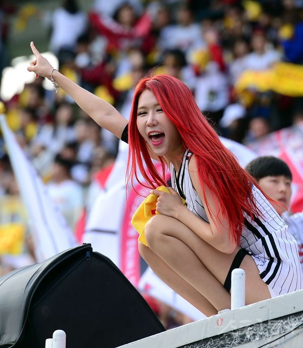 9일 서울 잠실야구장에서 ‘2019 신한은행 MY CAR KBO리그’ LG 트윈스와 키움 히어로즈의 준PO 3차전 경기가 열렸다. LG 치어리더가 응원을 펼치고 있다. 잠실 | 김민성 기자 marineboy@donga.com