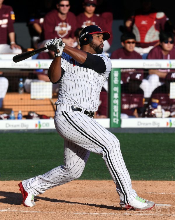 9일 서울 잠실야구장에서 ‘2019 신한은행 MY CAR KBO리그’ LG 트윈스와 키움 히어로즈의 준PO 3차전 경기가 열렸다. 8회말 무사에서 LG 페게로가 우월 솔로 홈런을 쏘아 올리고 있다. 잠실 | 김민성 기자 marineboy@donga.com