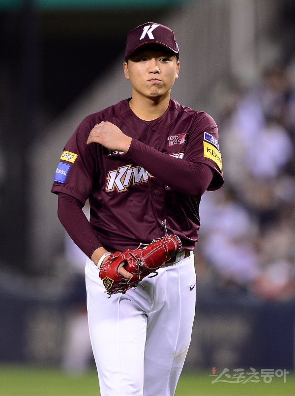 키움 선발 이승호가 2회말을 삼자범퇴로 마무리한 후 박수를 치며 덕아웃으로 향하고 있다.
