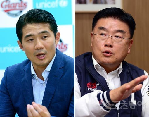 롯데 단장 성민규(왼쪽)-두산 단장 김태룡. 스포츠동아DB