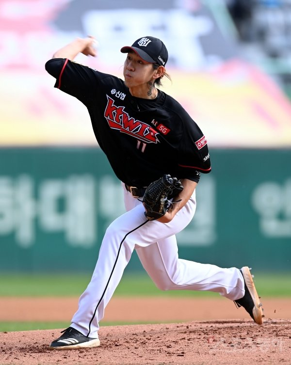 18일 인천 SK행복드림구장에서 ‘2020 신한은행 SOL KBO리그’ SK 와이번스와 kt 위즈의 경기가 열렸다. kt 선발투수 이대은이 힘차게 볼을 던지고 있다.