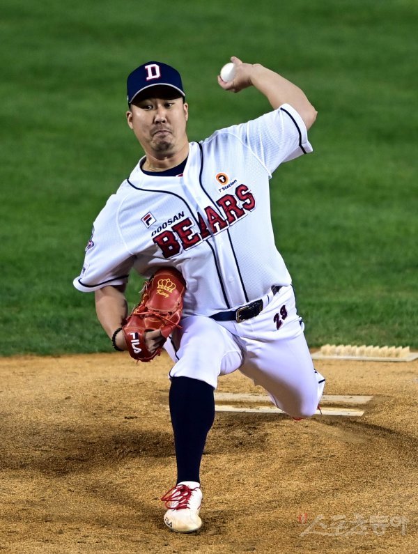 올해 두산 마운드의 사정은 크게 달라졌다. 김 감독이 애초 구상했던 선발진 운용 계획이 어긋났다. 이용찬은 팔꿈치 인대접합수술을 받아 시즌을 일찌감치 마감했고, 크리스 플렉센도 발등 골절상으로 2개월간 자리를 비웠다. 이영하는 지금 마무리를 맡고 있다. 유희관의 역할이 그만큼 중요했다.