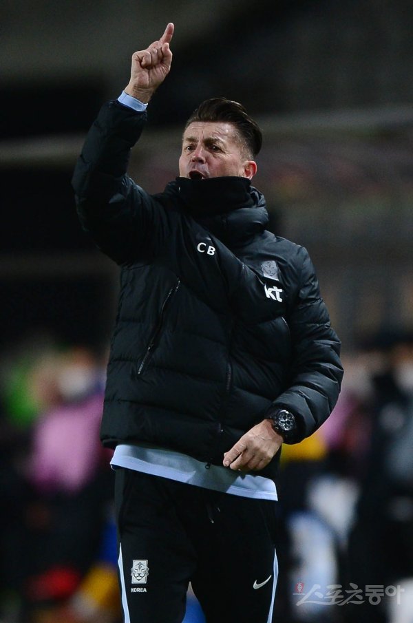 30일 경기도 고양종합운동장에서 열린 ‘신세계 이마트 초청 여자축구국가대표팀 친선경기’ 한국과 뉴질랜드의 경기에서 한국 콜린 벨 감독이 선수들에게 지시를 하고 있다.