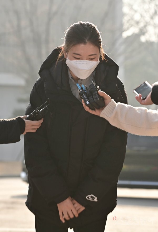 쇼트트랙 심석희가 21일 서울 송파구 올림픽공원 벨로드롬 대한빙상연맹 회의실에서 열린 ‘대한체육회 스포츠공정위원회’ 자격정지 여부 결정에 소명을 위해 출석하고 있다.