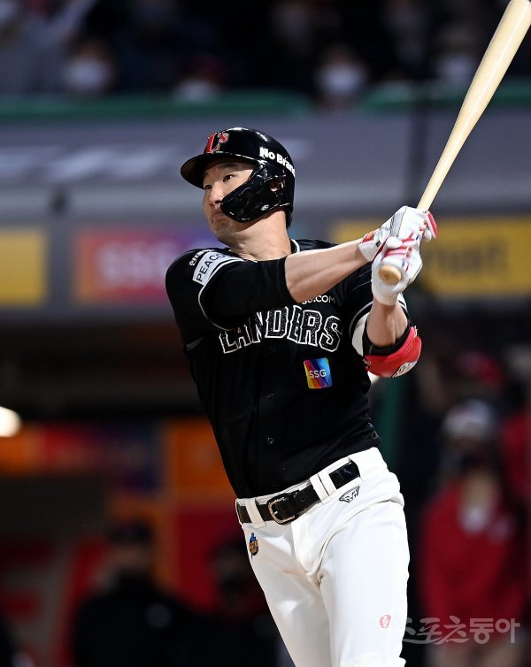 3일 인천 SSG 랜더스필드에서 ‘2022 신한은행 SOL KBO리그’ SSG 랜더스와 한화 이글스의 경기가 열렸다. 7회말 1사 2루에서 SSG 오태곤이 1타점 역전 2루타를 날리고 있다.