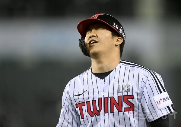 3일 서울 잠실야구장에서 ‘2022 신한은행 MY CAR KBO리그’ 두산 베어스와 LG 트윈스 경기가 열렸다. 8회말 1사 3루 LG 문보경이 역전 1타점 희생타를 친 후 더그아웃으로 향하고 있다.