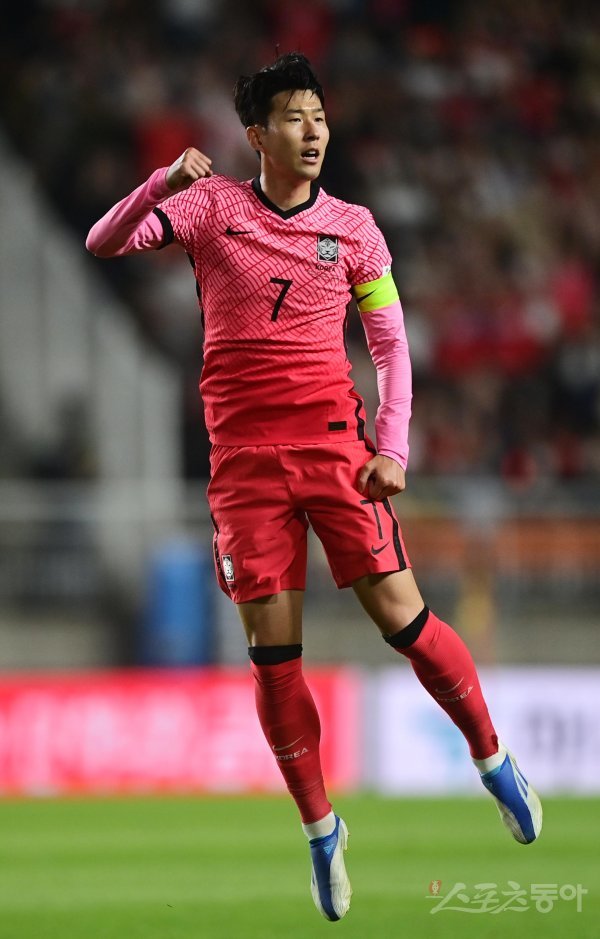 10일 수원월드컵경기장에서 열린 ‘하나은행 초청 축구국가대표팀 친선경기’ 한국과 파라과이의 경기에서 한국 손흥민이 골을 성공시킨 후 세리머니를 하고 있다.